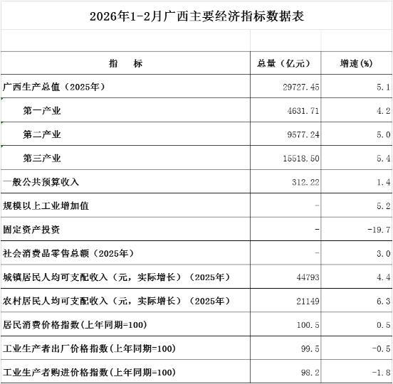 2026年1-2月广西主要经济指标数据表